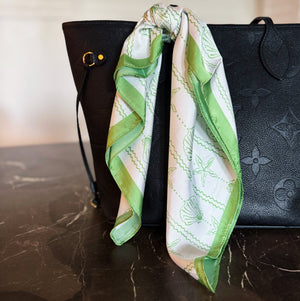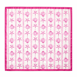 Bring effortless coastal charm to your wardrobe with the Shoreline Shell Scarf. Featuring a breezy shell-inspired print and a classic square silhouette, this versatile accessory captures relaxed vacation style—perfect for tying in your hair, around your neck, or on your favorite handbag.