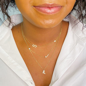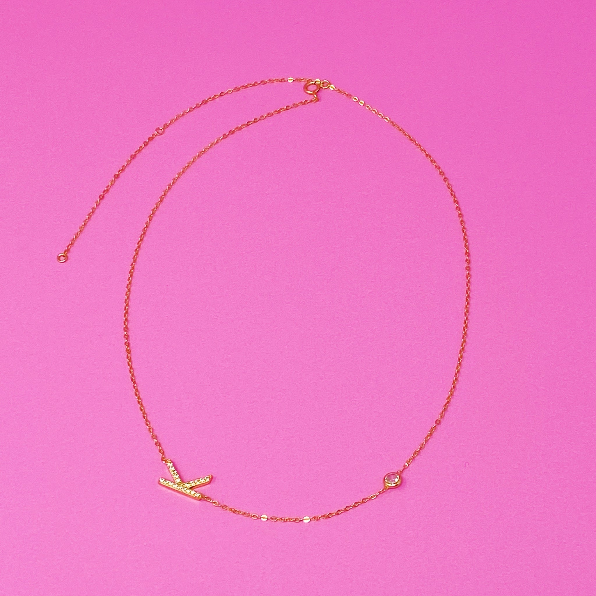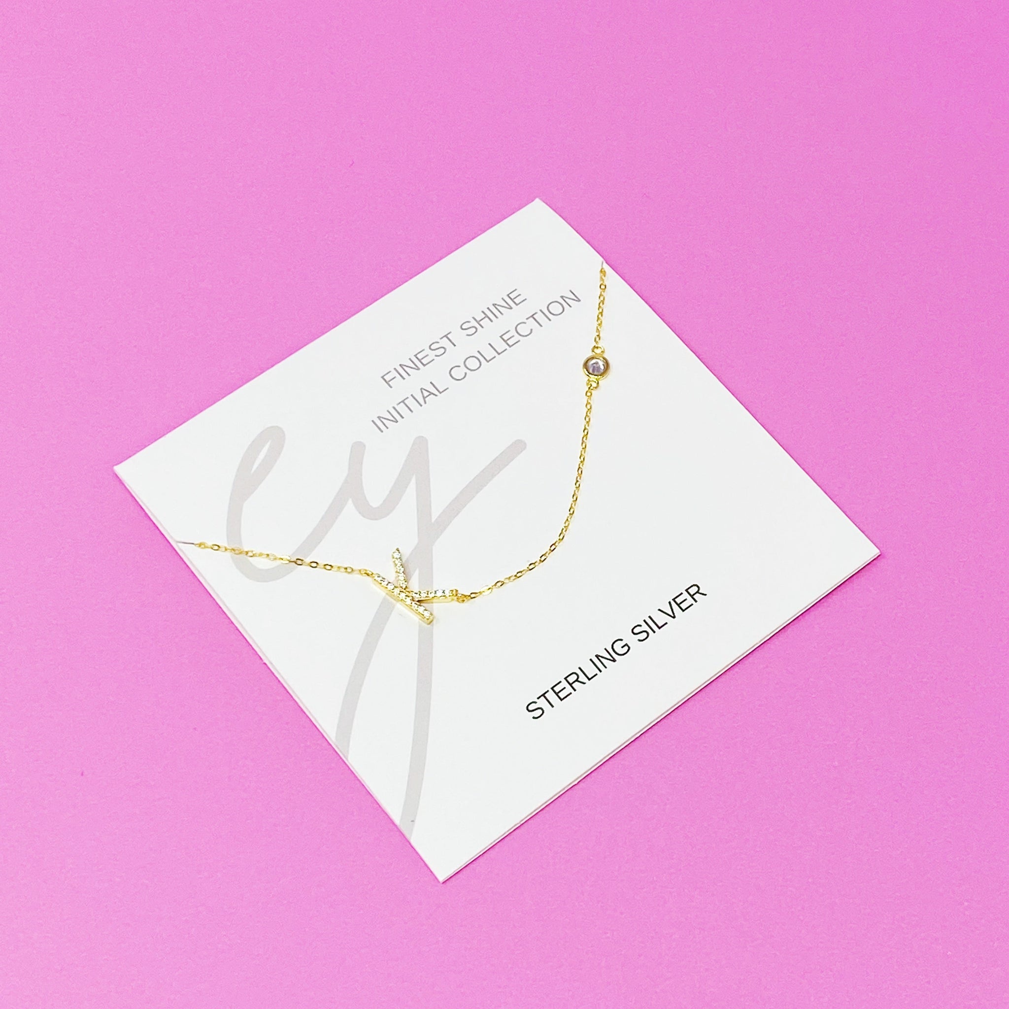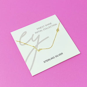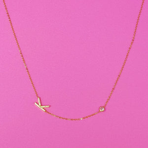 Beautiful understated side hanging initial necklace. Dainty chain, delicate shine on initial and small CZ on the chain make perfect harmony in each piece. Comes on our pretty Ellison + Young special card that is designed for this collection.