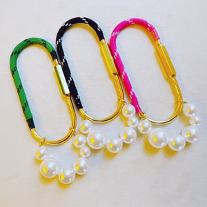 Add a unique touch to your bag with our modern and chic Roped And Pearled Shackle Bag Charm. The roped and pearled design adds an elegant flair, while the shackle clip ensures secure attachment. Elevate your style with this stylish accessory.