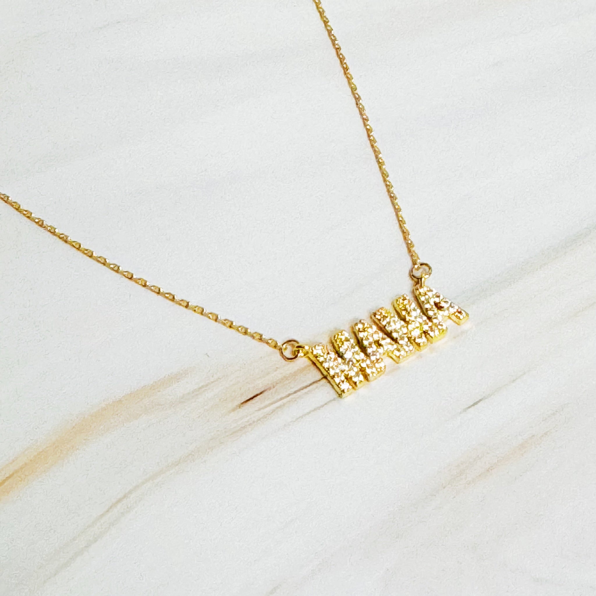 Clean font of MAMA with sparkling CZ stones.