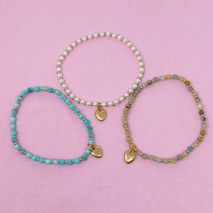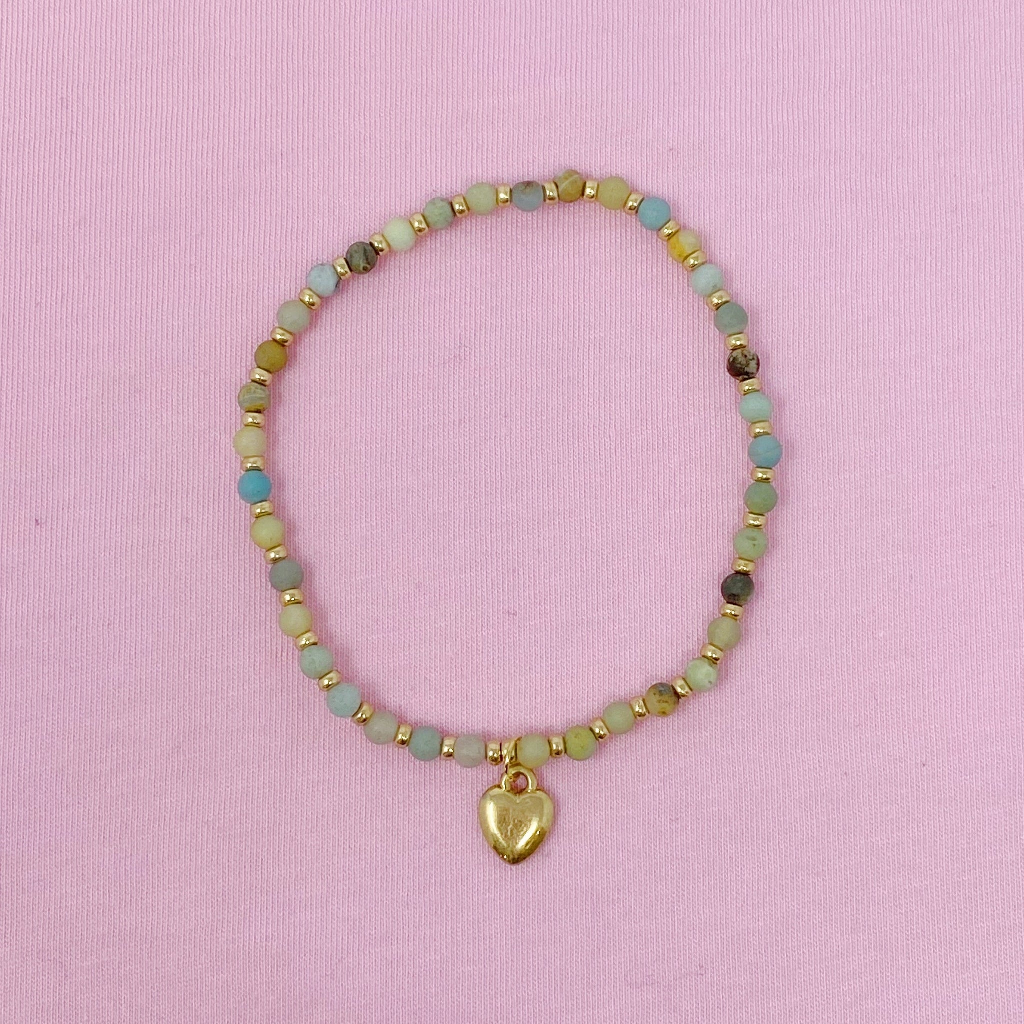Beautiful semi-precious stone bead anklet with little heart dangle charm. Stretch anklet and easy to put on and off.